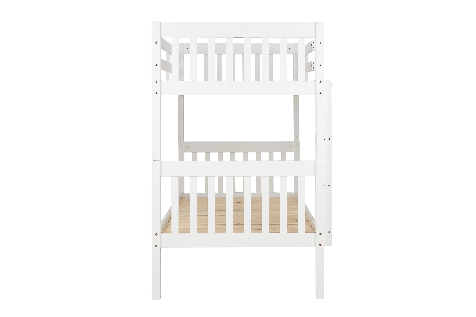 The Benji Bunk Bed is the perfect space-saving solution for children's bedrooms. Made from durable wood with a fresh white finish, this bunk bed combines sturdy construction with a timeless, playful design. Its neutral colour makes it versatile and easy to match with various bedroom themes, adding a clean, modern touch to your childs room.