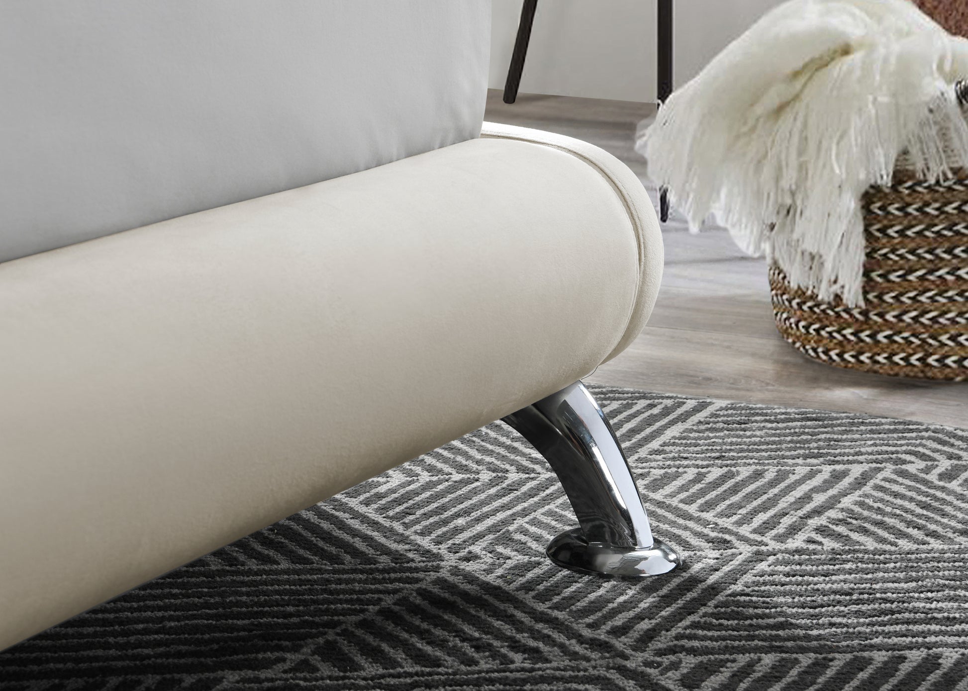 The Hemlock features a sophisticated curved shape and a slightly slanted headboard with stunning chrome-plated feet.