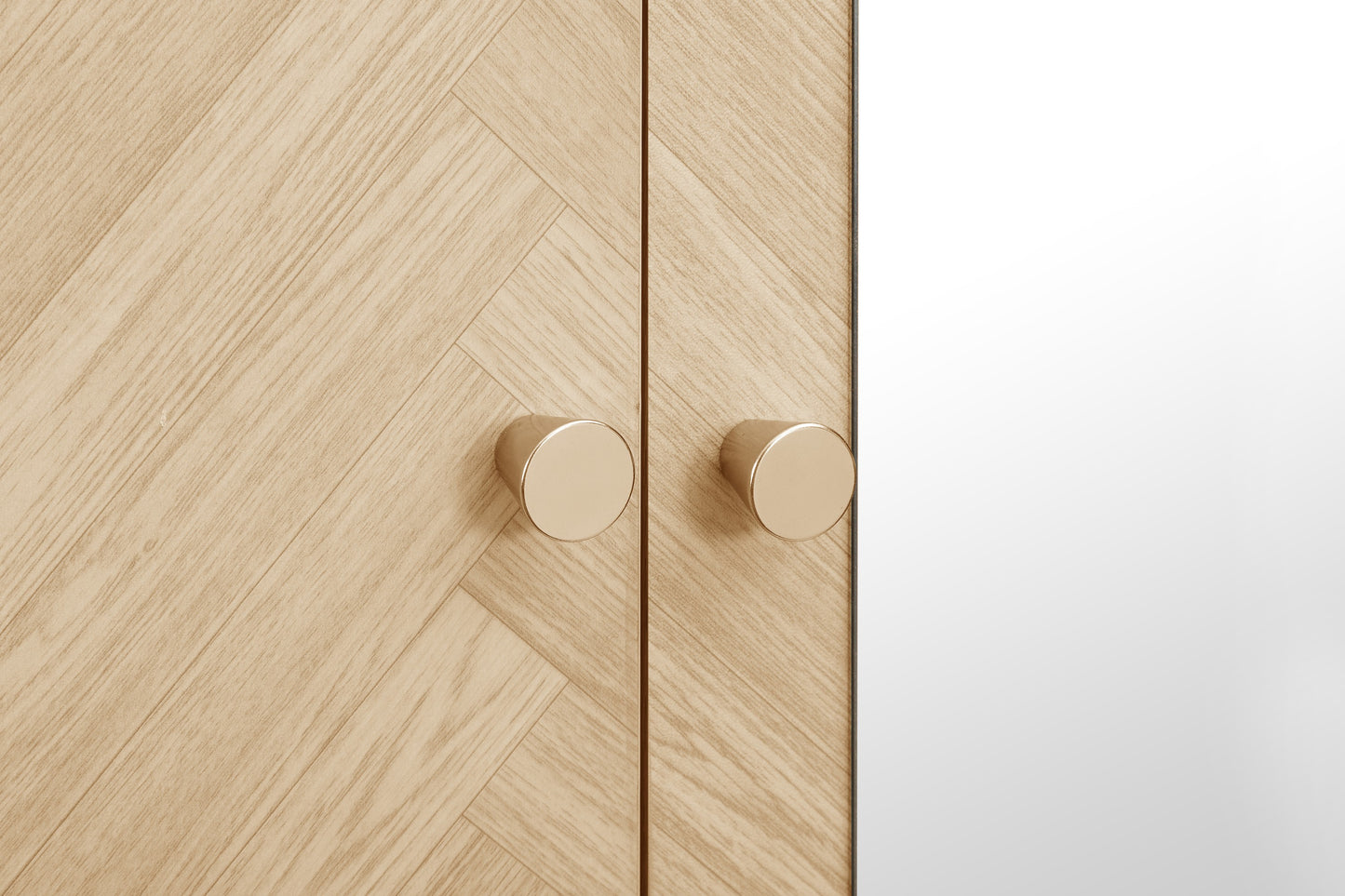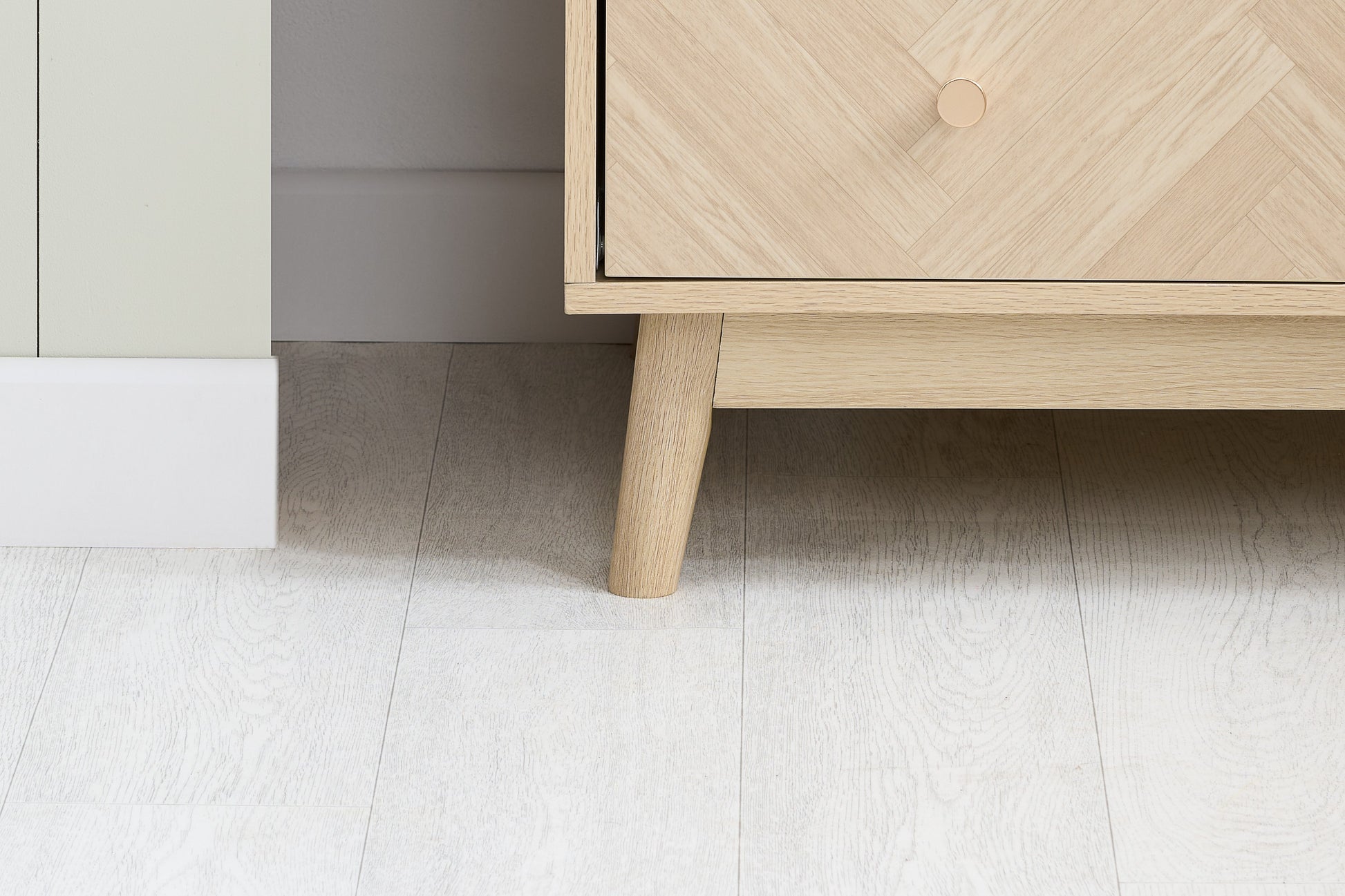 Inspired by the symmetry and precision of classic chevron patterns, the Herringford range brings an element of architectural finesse to your bedroom. Each piece is thoughtfully constructed from high-quality particleboard, finished with a laminated oak effect that captures the essence and visual warmth of real wood.