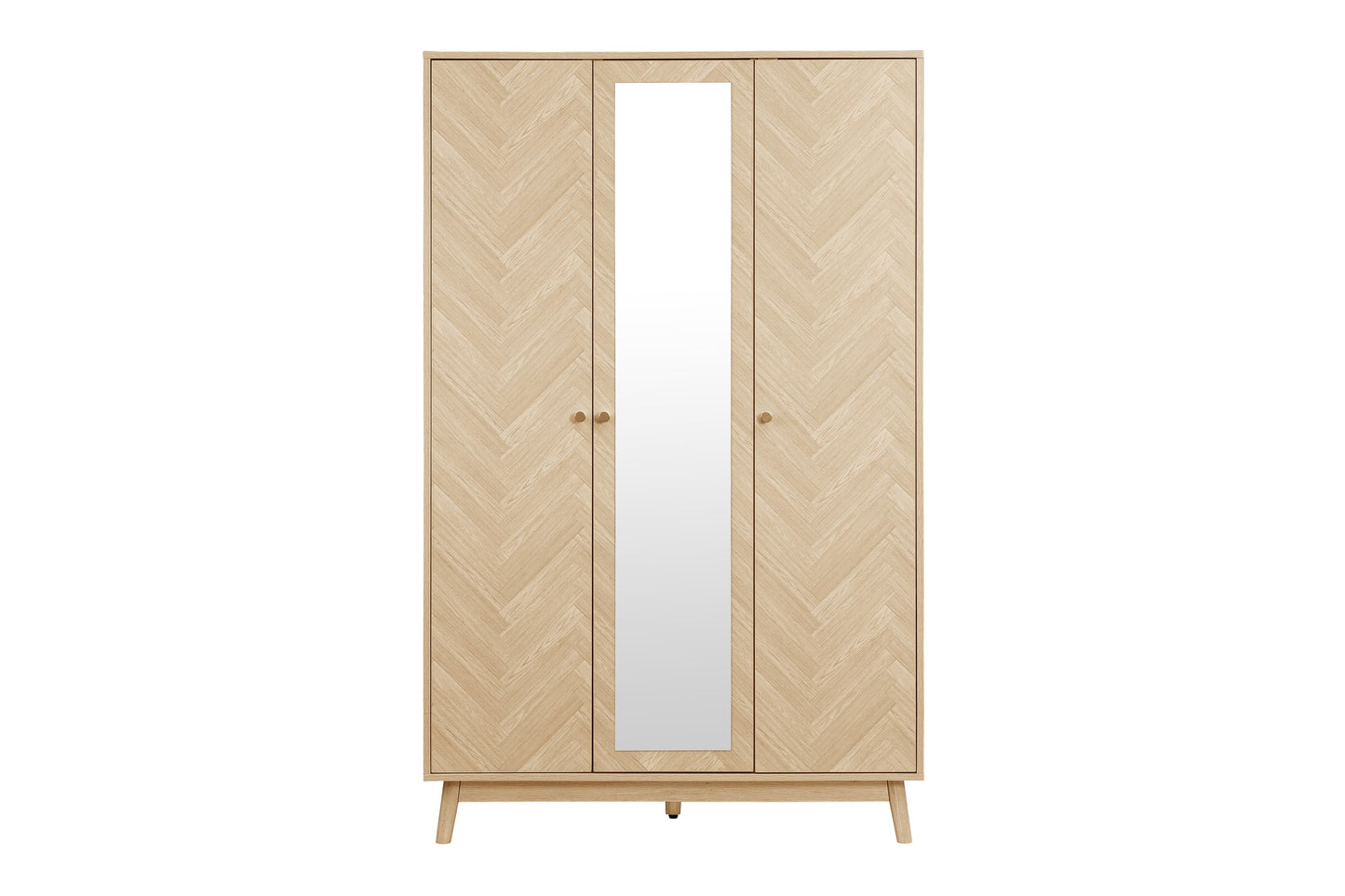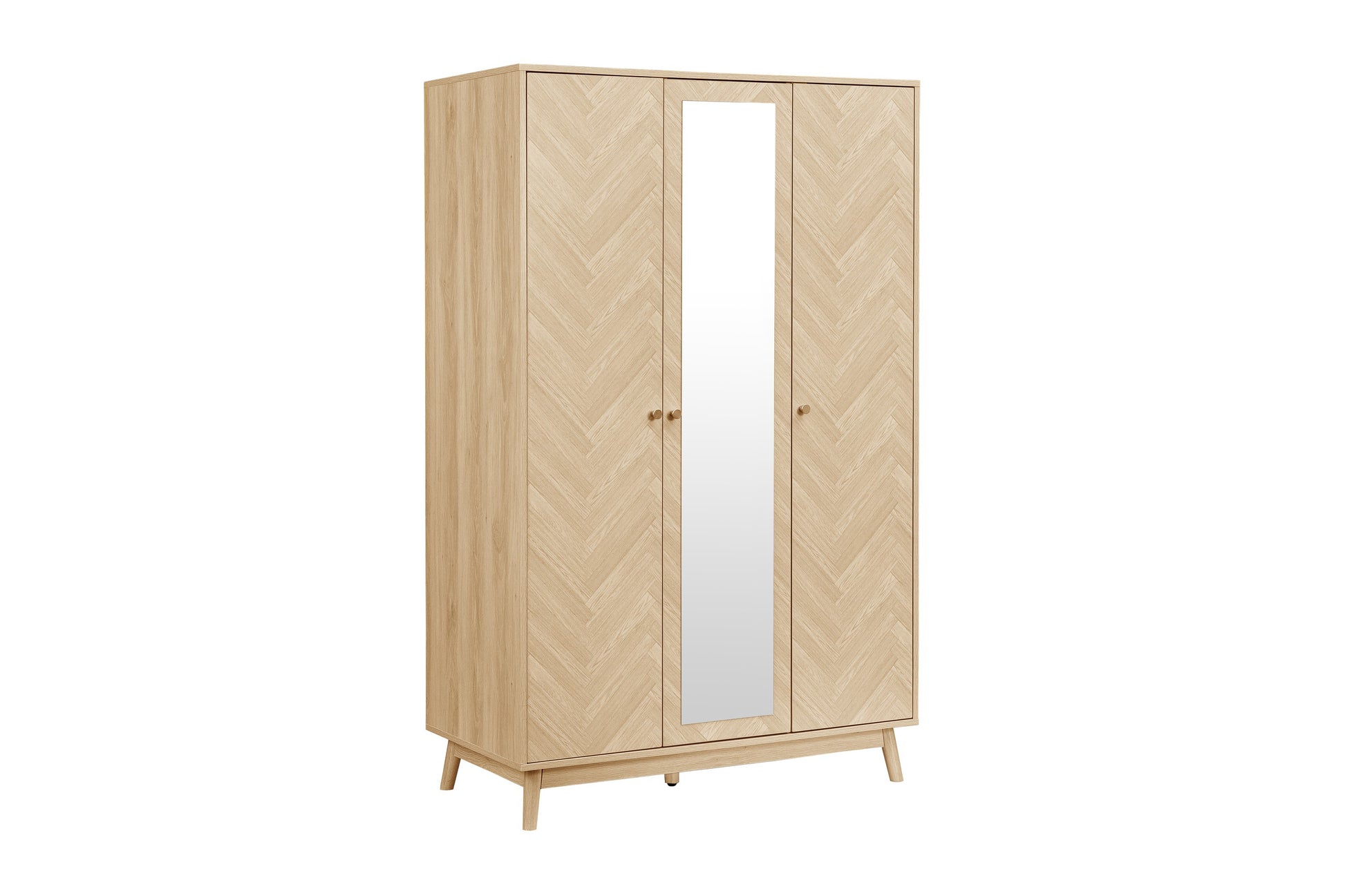 The Herringford 3-Door Wardrobe with Mirror is a majestic addition to the collection, beautifully marrying form and function. This grand piece features a trio of doors, with the central one housing a full-length mirror, adding depth and brightness to any bedroom.