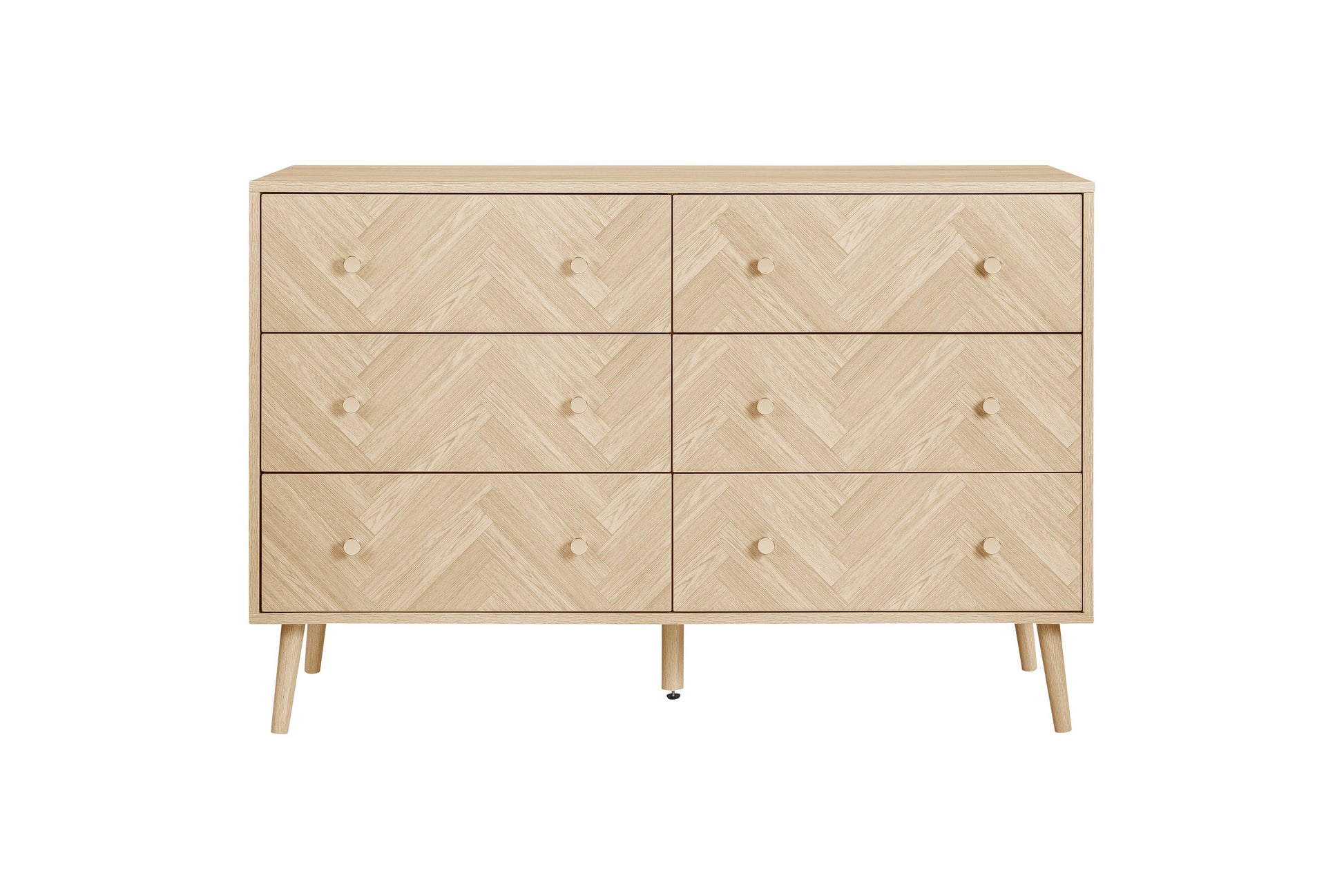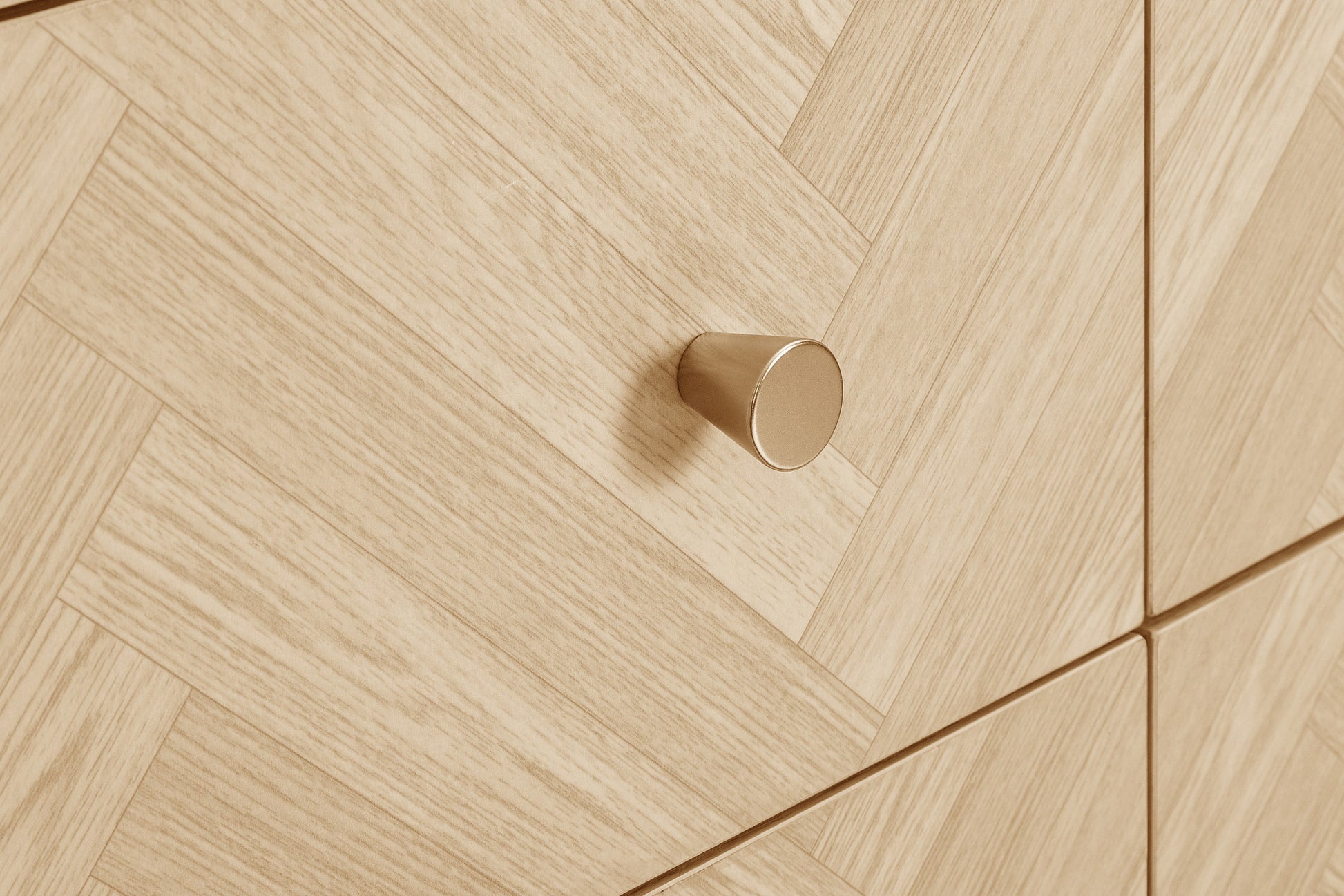 Inspired by the symmetry and precision of classic chevron patterns, the Herringford range brings an element of architectural finesse to your bedroom. Each piece is thoughtfully constructed from high-quality particleboard, finished with a laminated oak effect that captures the essence and visual warmth of real wood.