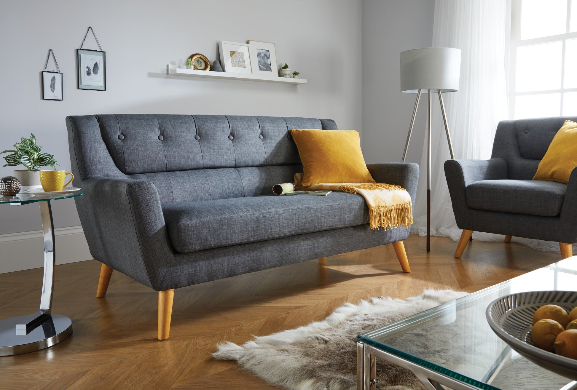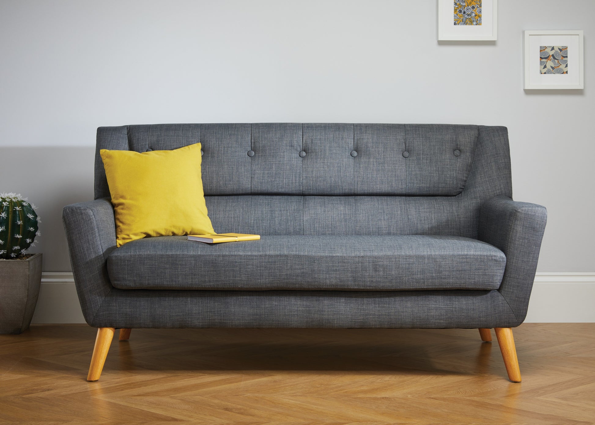 With streamline shapes and classic button back backrest this retro inspired sofa will add a cool, contemporary finish to any room setting.