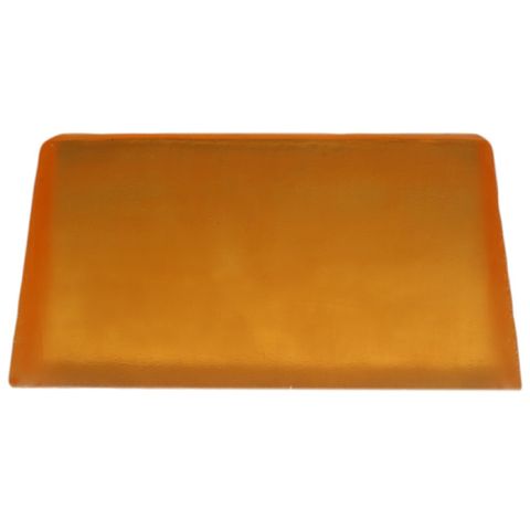 Soap slices are sold wrapped in waxed paper with an ingredients label and weigh approximately 100g.