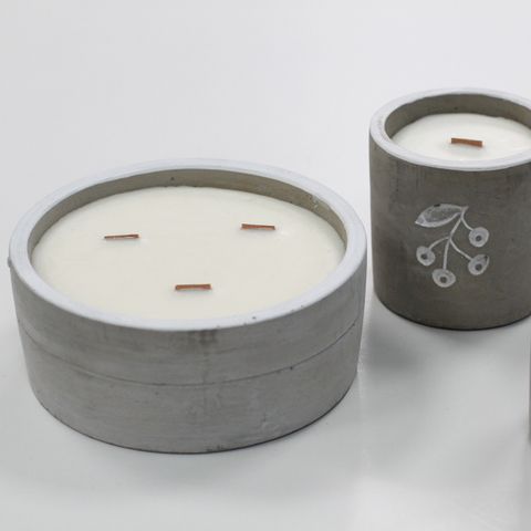 Felt pads have been added to the bottom to prevent the scratching of surfaces. The natural wooden wick creates the soothing sound of a crackling fire! The design of the concrete pot allows reusing it to integrate it into your decor once the candle is consumed such as a plant pot.