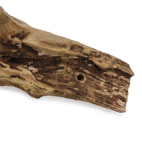 The glass is hand-blown and while still hot it is then relaxed over a piece of Gamal root, the glass then hardens to the shape of the wood ensuring a perfect fit. They are crafted using a natural product by using hand tools in the traditional Balinese way. It provides a one-of-a-kind setting for stones and air plants, cut flowers or a wine decanter.