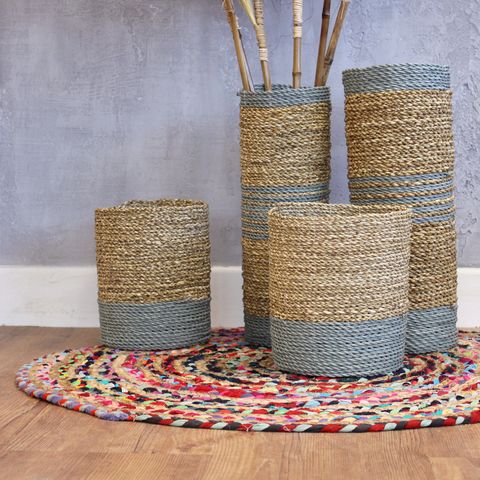 Seagrass & Abu-Abu Raffia Set - 2 Vase & 2 Bins