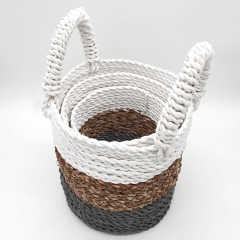 Seagrass Basket Set - Grey / Natural / White is perfect for displaying your products, multi-functional baskets are handwoven and add a genuine earthy look to any space.