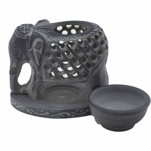 Soapstone Oil Burner 10.5cm - Standing Elephant