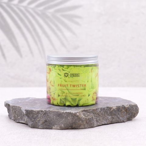 Delightful Fruit Twister Whipped Soap - Indulge in the fresh and fruity scent of strawberries and kiwi while treating your skin to a luxurious bathing experience.