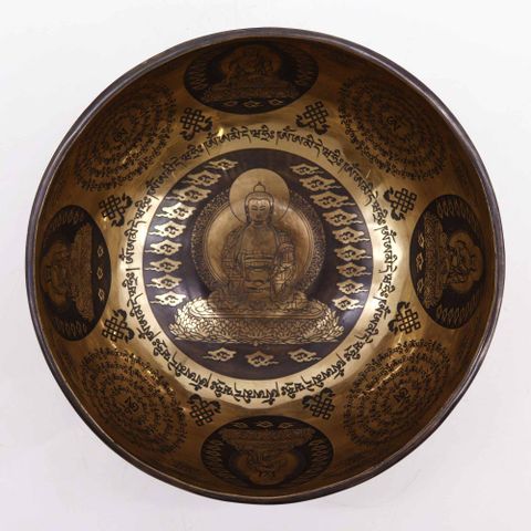Tibetan Healing Engraved Bowl - 21cm - 5 Buddhas