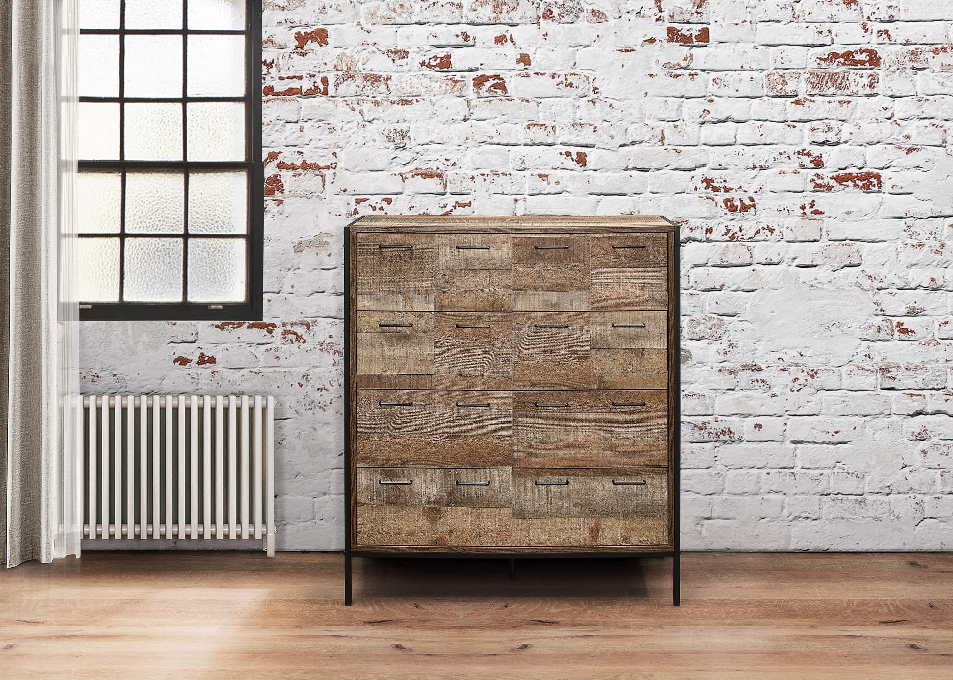 This versatile range is crafted from a metal frame with industrial-effect detail and has a wood-effect finish.